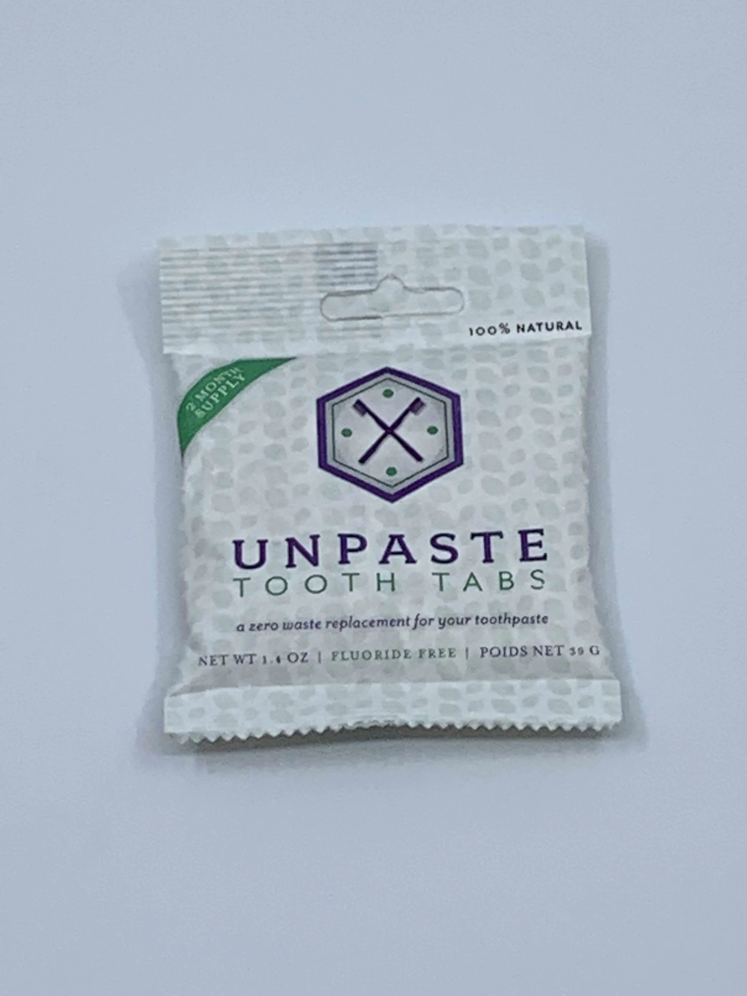 An example of a minimally packaged alternative to traditional toothpaste.
