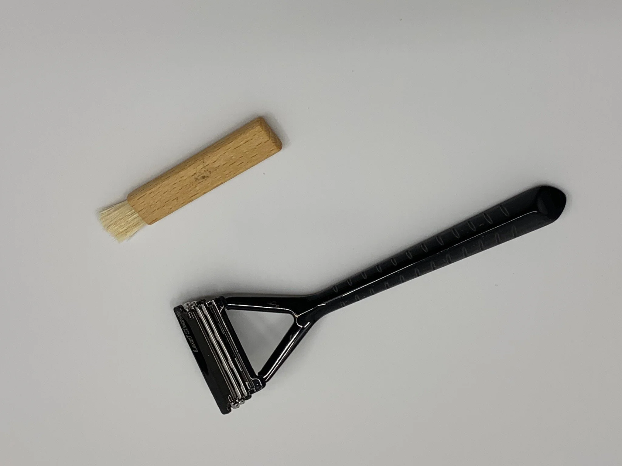 A reusable razor, pictured here alongside a blade cleaner, avoid the waste of disposable units.